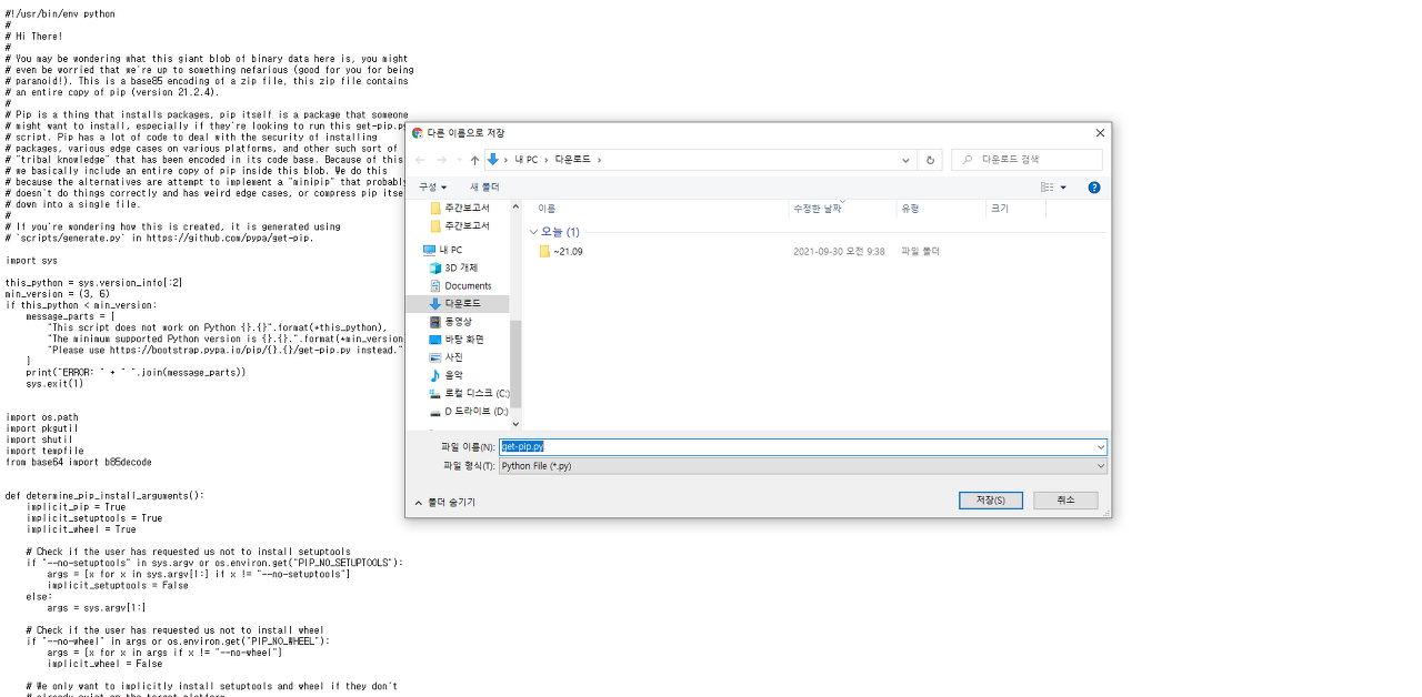 python이 설치되어 있다면, pip를 설치하기 위한 파일을 받아오자.