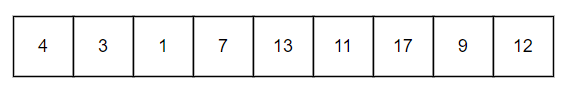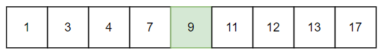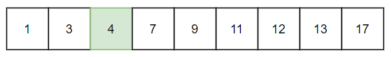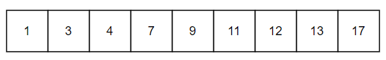 일단 기본적으로 정렬이 된 배열이 필요하다. low는 1을 가리키는 인덱스 0, high는 17을 가리키는 인덱스 8이다.