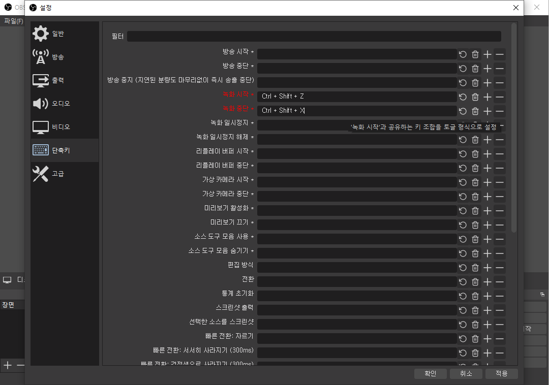 ( 내 경우엔 Ctrl 누르면서 Shift 누르면서 Z키를 누르면 녹화 시작 버튼이 된다. )