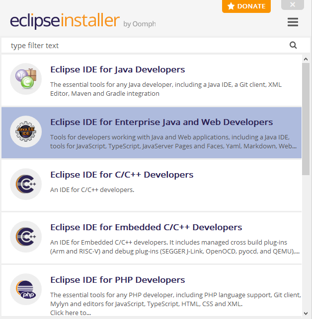 참고로 eclipse에는 여러 에디션이 있다. 아래와 같이 말이다. 근데 맨 위와 바로 아래의 것은 비슷해 보인다.