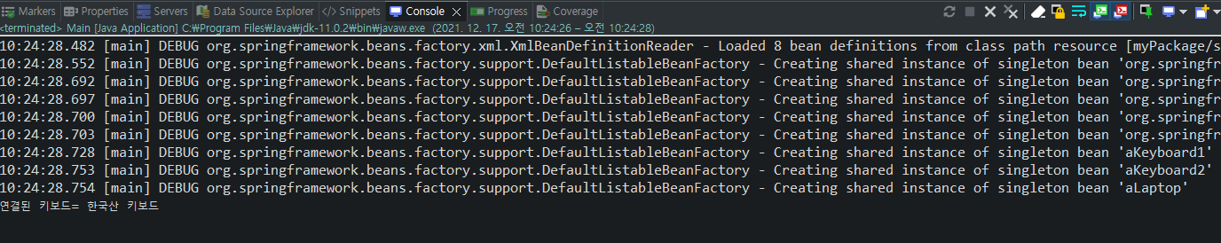 <bean id="aKeyboard1" class="myPackage.KoreaKeyboard" />