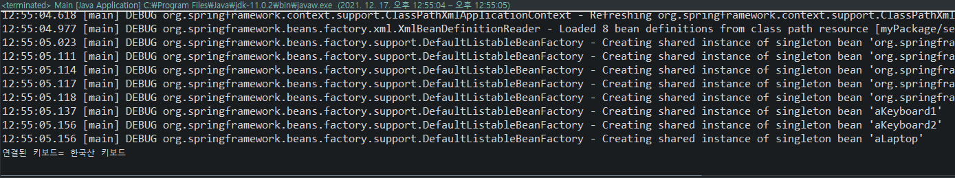 <bean id="aKeyboard1" class="myPackage.KoreaKeyboard" />