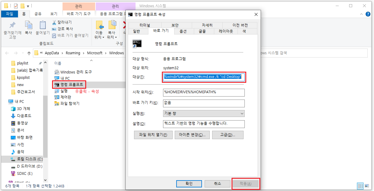 cmd 시작 위치를 바탕화면으로 옮겨보자